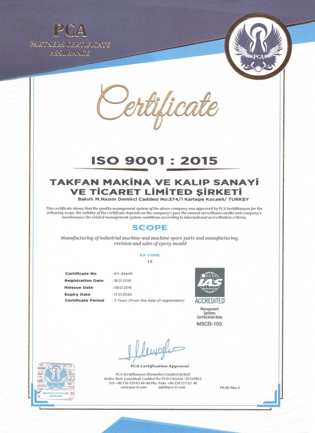 To achieve business excellence through Total Quality Management, TAKFAN MAKİNA employees are the duty of all of us.